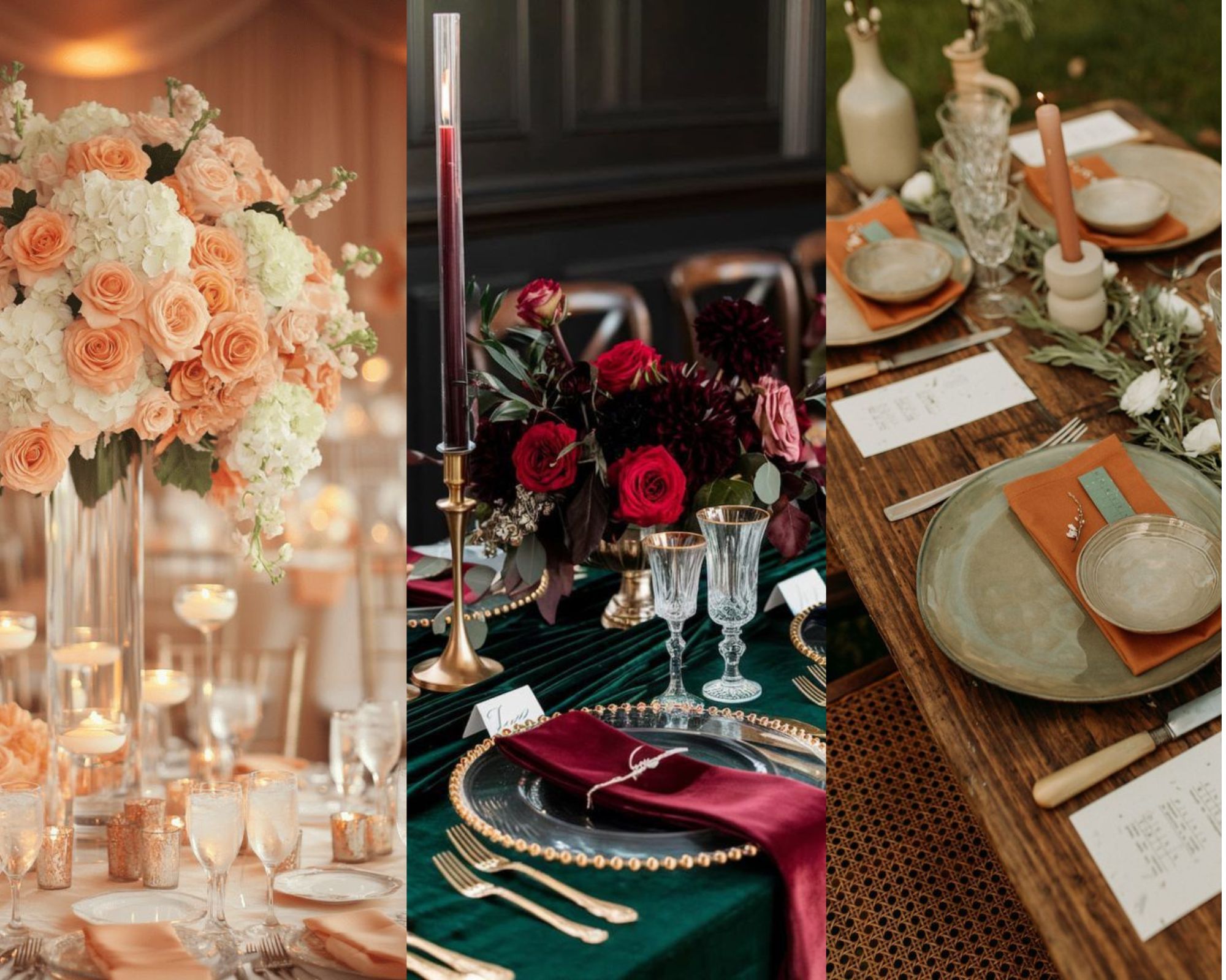 Warna-warna permata (jewel tones) selalu berhasil memberikan kesan mahal secara instan. Di tahun 2026, pasangan akan lebih berani mencampurkan dua warna kuat sekaligus tanpa ragu. Palet ini memberikan kesan heritage yang kuat, sangat cocok untuk pernikahan adat di Indonesia yang sering kali menggunakan kain-kain tradisional dengan benang emas.