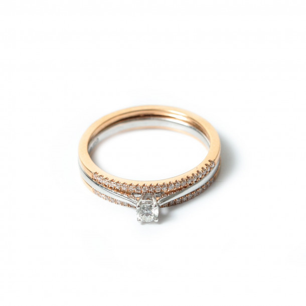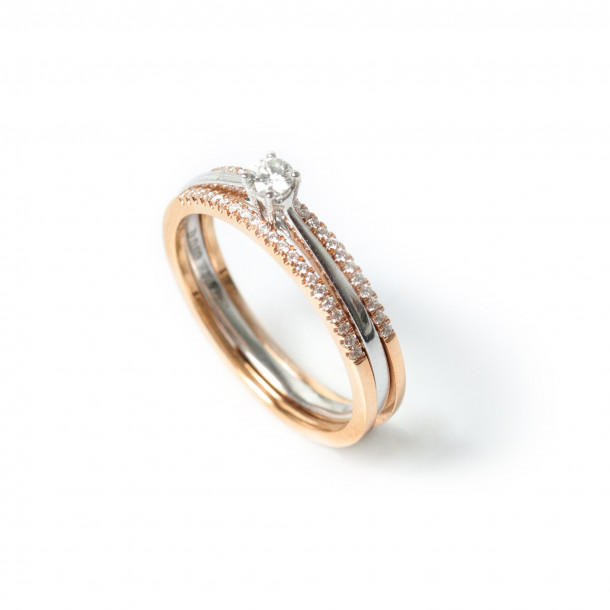 Cincin Berlian 2 in 1 dengan perpaduan emas putih dan emas rose menjadikan cincin berlian ini tampak mewah dan elegan. Cincin Berlian ini juga termasuk salah satu Best Seller Collection tahun ini.