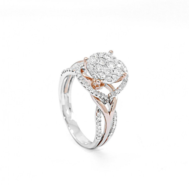Tampil dalam gaya yang begitu mewah dan bertabur berlian-berlian berkualitas tinggisalah satu model cincin tunangan dari koleksi cincin wanita V&Co Jewellery ini akan terlihat luar biasa menakjubkan pada jari Anda. Menggunakan emas putih sebagai bahan utamanyamodel cincin tunangan ini dirancang dalam bentuk variasi cincin glossy and doff sehingga memiliki kilau dan gradasi berpasir yang menarik. Untuk mempertahankan kilaunya dan juga menjadikan cincin ini lebih kuatrhodium dipergunakan untuk melapisinya dimana cincin kemudian memiliki sifat anti korosi. Pada bagian centerada 8 butir berlian sebesar 0,26 karatsedangkan pada bagian side-nya ada 9 butir berlian sebesar 0,10 karat dan 60 butir berlian sebesar 0,28 karat. Semua berlian yang dipilih pada desainnya memiliki tingkat kejernihan VVS-Vsbentuk round diamond dan berada pada grade F. Model cincin tunangan ini cocok bagi Anda yang mencintai kemewahan yang sempurna.