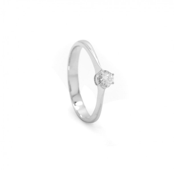 Menciptakan kesan polos dalam desainnya yang modern dan rampingsalah satu model cincin tunangan dari koleksi cincin berlian wanita V&Co Jewellery ini hadir bagi Anda yang menyukai tampilan minimalis yang cantik. Dengan berat hanya 2,2 grammodel cincin tunangan ini dirancang dalam bentuk variasi cincin glossy and doff sehingga memiliki tampilan emas putih yang mengkilap dan bergradasi pasir halus yang menarik. Rhodiumyang merupakan salah satu jenis platinumdipergunakan untuk melapisi cincin ini sehingga memiliki sifat anti korosi dan kilau pada cincin bisa bertahan lebih lama. Pada bagian tengah lingkar cincinterdapat 1 butir berlian dengan potongan round diamond sebesar 0,11 karat. Berlian ini memiliki tingkat kejernihan VVS-Vs dan berada pada grade F. Model cincin tunangan ini akan terlihat begitu elegan pada jari Anda.