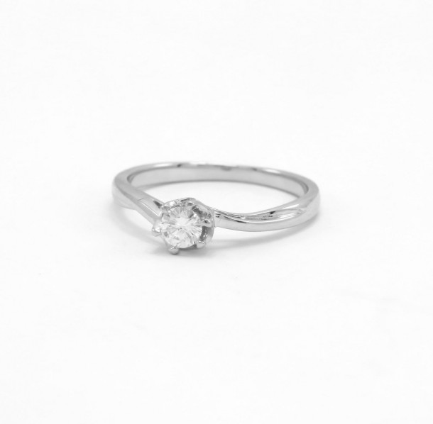 Salah satu model cincin tunangan dari koleksi cincin berlian wanita V&Co Jewellery ini bisa menjadi pilihan menarik bagi Anda yang menginginkan tampilan cincin yang modern dan stylish tapi tetap sederhana. Memiliki desain lingkar yang melilit seperti ranting pohonmodel cincin tunangan ini terbuat dari emas putih 18K. Dengan berat kurang dari 2 gramcincin ini dirancang dalam bentuk variasi cincin glossy and doff untuk mendapatkan kilau yang sempurna. Tidak hanya ituuntuk mempertahankan kilau tersebutrhodium dipergunakan untuk melapisi cincin ini sehingga memiliki sifat anti korosi dari platinum. Satu butir berlian sebesar 0,25 karat menjadi sentuhan yang begitu menawan pada bagian tengah cincin ini. Berlian yang dipergunakan memiliki bentuk potongan round diamond dengan tingkat kejernihan VVS-Vs dan grade F. Model cincin tunangan yang memiliki perpaduan gaya klasik dan modern ini bisa menjadi jawaban yang tepat bagi Anda.
