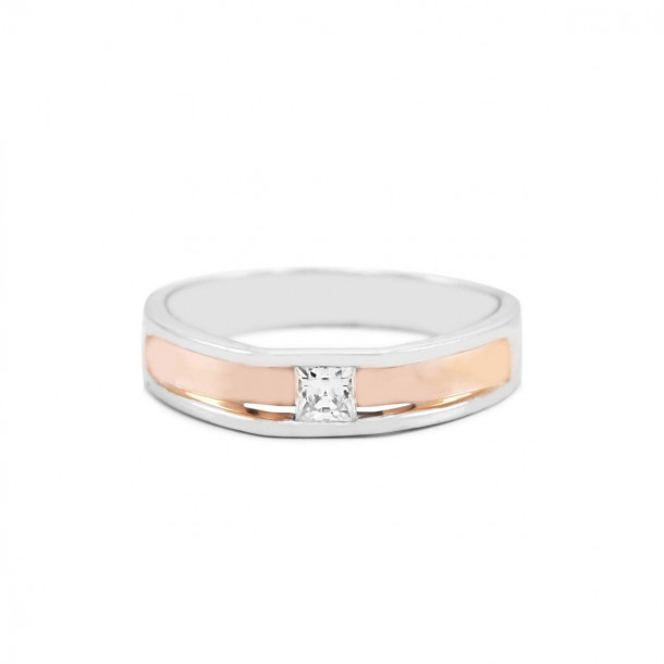 Rhodium dipergunakan sebagai lapisan yang akan memperkuat daya tahan cincin terhadap zat-zat kimia atau senyawa yang dapat menjadikannya berkarat. Terlihat begitu klasik pada saat yang bersamaan, cincin kawin ini menggunakan 1 butir princess diamond sebesar 0,25 karat yang memiliki clarity Vvs dan berada pada grade F. Bagi Anda dan pasangan Anda yang ingin tampil elegan, cincin kawin ini akan menjadi pilihan yang menarik.