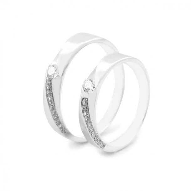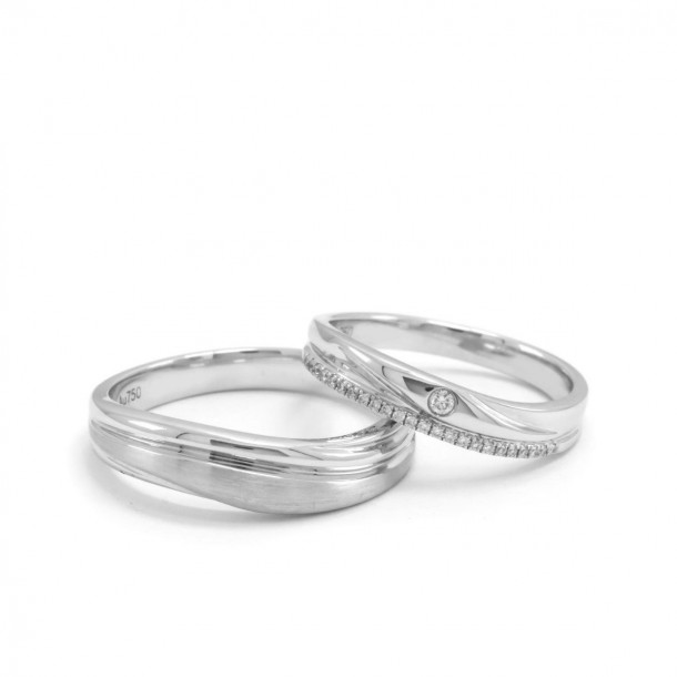 Cincin kawin ini dibuat dalam variasi glossy dan doff untuk memaksimalkan kilau dari emas putih yang cantik. Tidak hanya itu, model cincin kawin ini menggunakan berlian berkualitas tinggi dengan potongan round dimana tingkat kejernihan nyaris sempurna Vvs dan berada pada grade F.