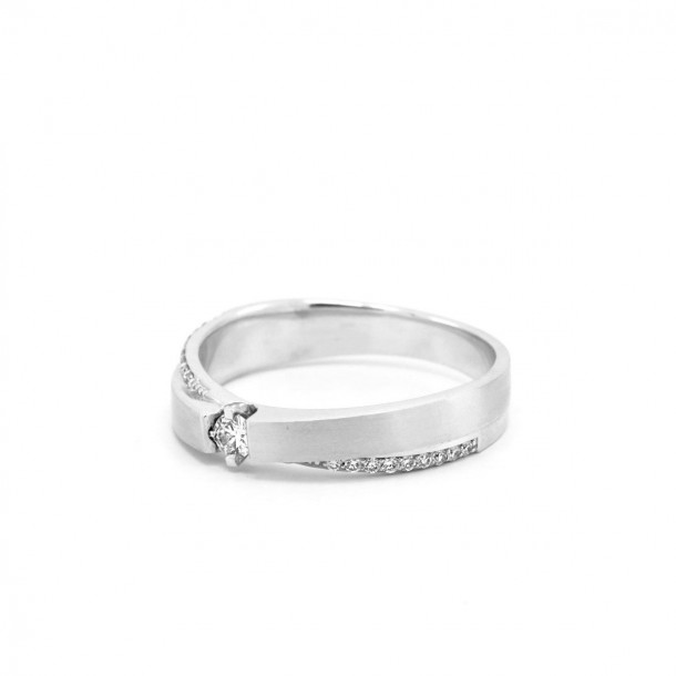 Tidak hanya dilapisi dengan rhodium yang akan membuat cincin ini lebih kuat dan tahan lama karena mengantongi sifat anti korosi platinum, cincin kawin yang memiliki desain begitu sederhana tapi tetap modern ini dirancang dalam variasi cincin glossy and doff sehingga memiliki kilau dari emas putih yang luar biasa. Sebutir berlian yang menjadi center diamondnya memiliki potongan round diamond yang begitu cantik dan sebesar 0,11 karat dengan dikelilingi 18 butir side diamonds sebesar 0,11 karat. Jika tampil elegan dan mewah merupakan keinginan Anda dan pasangan Anda, cincin kawin dari V&Co Jewellery ini adalah jawabannya!