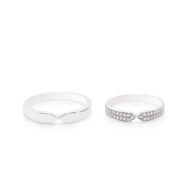 Tampil dalam kontras desain yang menarik antara model cincin kawin pria dan wanitanya, salah satu cincin dari koleksi exclusive V&Co Jewellery ini akan terlihat begitu elegan di jari Anda dan pasangan Anda. Kedua model cincin kawin ini dirancang dalam variasi glossy and doff sehingga memiliki kilau yang maksimal dari emas putih. Tidak hanya itu, cincin ini juga dilapisi dengan rhodium sehingga memiliki daya tahan tinggi dan sifat anti korosi dari platinum