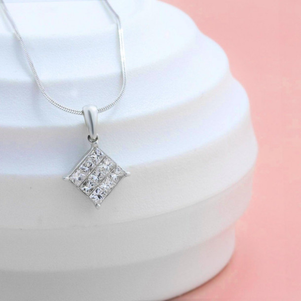 Liontin Berlian dengan tekstur seperti potongan berlian untuk menghasilkan kilauan seindah berlian.