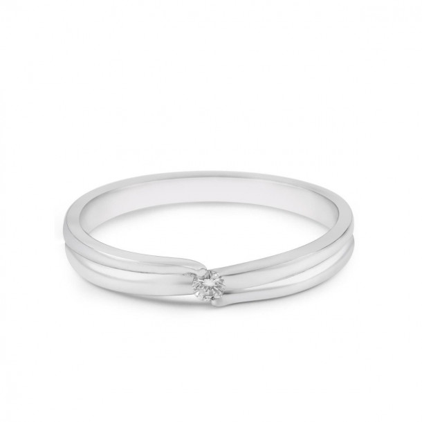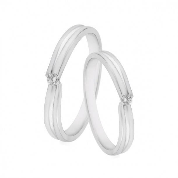 Cincin kawin V&Co Jewellery ini hadir dalam tampilan yang terlihat sederhana, tapi tetap modern. Model cincin ini ini dibuat dalam bentuk glossyâ€â€yang diperuntukkan membuat cincin lebih berkilau dan mudah dirawatâ€â€dan juga doffâ€â€yang memberikan efek kasar dan gradasi terhadap badan cincin. Seperti halnya pada cincin-cincin berkualitas lainnya, cincin kawin V&Co Jewellery ini diberikan juga lapisan rodhium yang merupakan salah satu jenis platinum yang akan membuat cincin memiliki sifat tahan korosi dan menambah kilau dari logam yang dipergunakan, khususnya pada emas putih. Model cincin kawin V&Co Jewellery ini sedikit lebih ramping daripada cincin pada umumnya dan lingkar badannya sedikit mengecil pada kedua ujungnya yang terlihat seperti disatukan bersama berlian 0,05 karat yang begitu indah. Tingkat kejernihan berlian berada di tingkat Vvs dimana di dalamnya tidak memiliki cacat atau nyaris sempurna dan warna berliannya ada pada grade F sehingga bisa memantulkan cahaya dengan sangat baik.