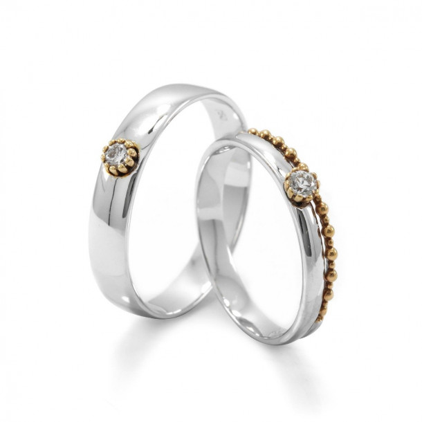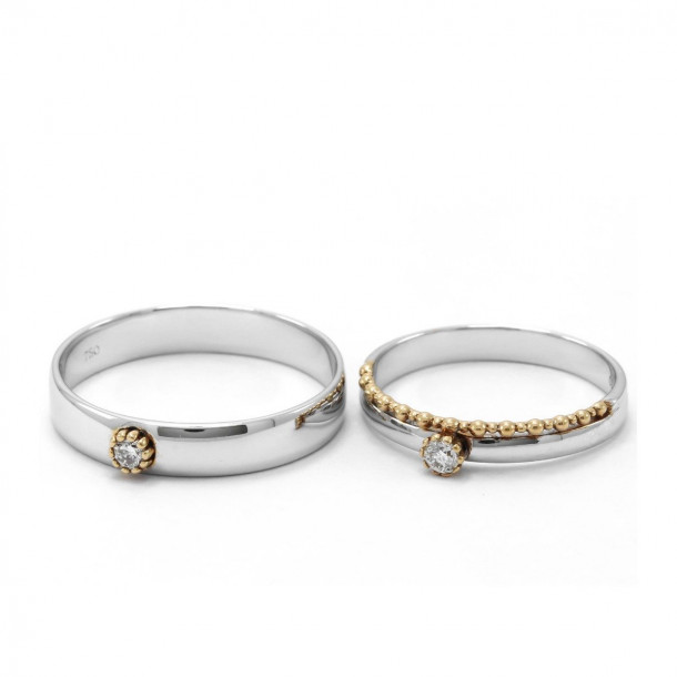 Cincin kawin ini dilengkapi pula dengan kilauan berlian berukuran 0,075 karat yang membuat tampilan cincin pria dan wanita semakin indah. Berlian tersebut dilindungi dengan sebuah aksen berwarna emas pada bagian sisi samping untuk menjaganya dari benturan. Meskipun penampilannya unik tapi cincin kawin ini memiliki kualitas yang baik.