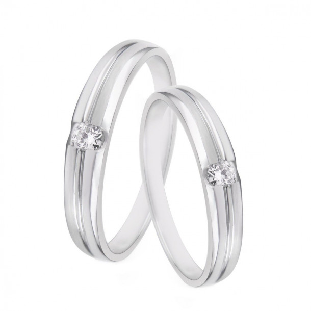Tampilan cincin yang klasik dan model yang tidak rumit membuat sisi modern dari cincin kawin V&Co Jewellery ini terlihat begitu menyilaukan. Menggunakan berlian sebesar 0,07 karat untuk cincin kawin pria dan 0,05 karat untuk cincin kawin wanita, cincin kawin ini memilih bentuk potongan round diamond untuk mengoptimalkan sifat brilliance yang dimiliki oleh batu berlian.