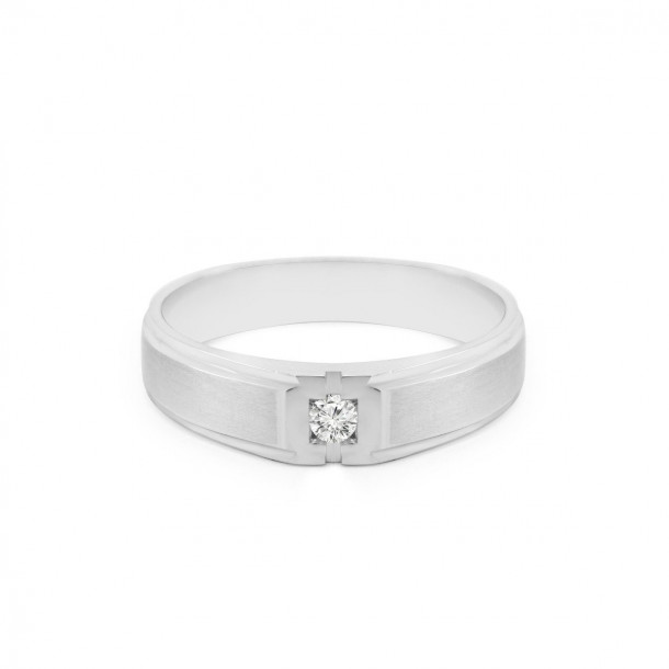 Lapisan rhodium pun menambah keindahan cincin dan membuatnya anti korosi. Pada cincin kawin V&Co Jewellery ini terdapat aksen lekukan dan kotak pada bagian tengah cincin yang dirancang untuk menyematkan sebuah round diamond. Selain membuat berlian tampak begitu cantik, penempatan berlian yang sempurna ini juga membuat berlian tidak mudah tergores saat mengalami benturan.
