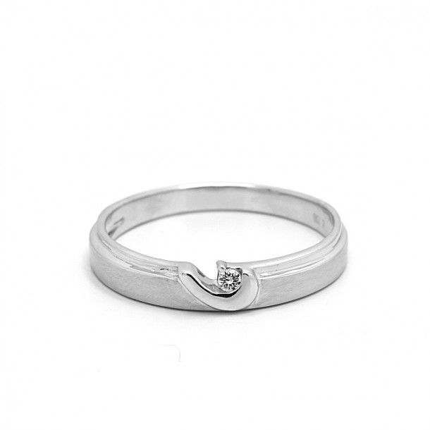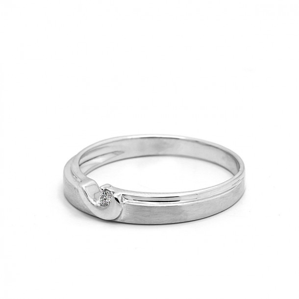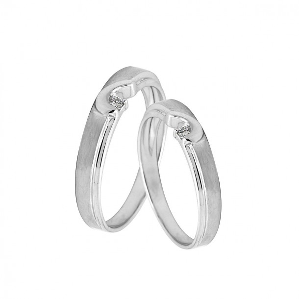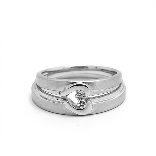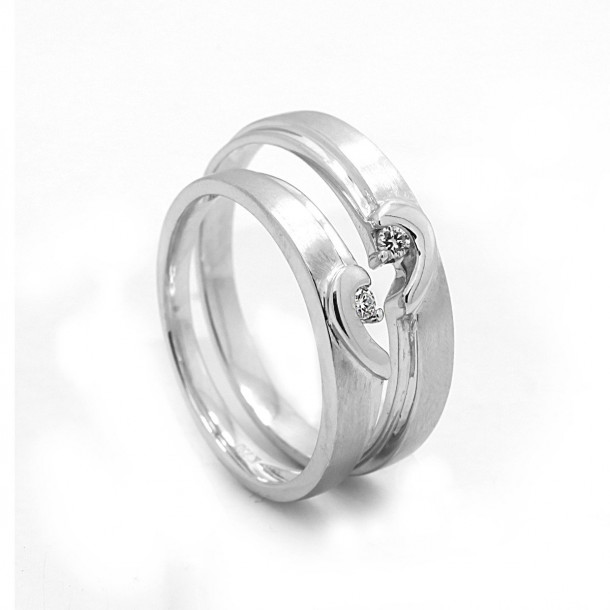 Cincin kawin milik V&Co Jewellery ini memiliki desain lekukan pada bagian tengah yang menjadi tempat bersematnya berlian. Selain memberikan bentuk yang begitu menawan, lekukan pada cincin ini juga berfungsi untuk melindungi berlian dari adanya benturan yang mungkin saja terjadi. Berat dari berlian tersebut adalah 0,03 karat untuk cincin pria dan wanita.
