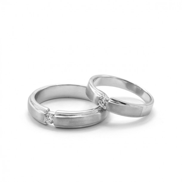 Berlapis dengan rodhium untuk memaksimalkan kemilaunya, cincin kawin ini ditemani dengan sebutir berlian berkualitas yang berada pada grade F dan clarity Vvs yang nyaris sempurna. Berlian pada kedua cincin kawin ini berpotongan round diamond dan memiliki karat sebesar 0,08 karat yang terlihat begitu elegan.